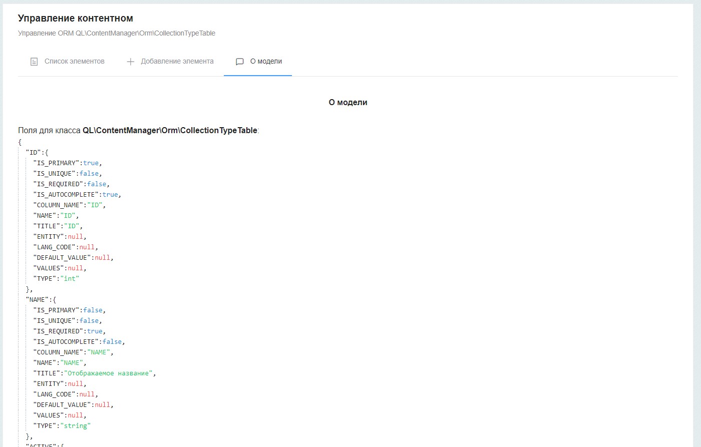 Для удобства у каждого зарегистрированного класса, через интерфейс, можно посмотреть схему ORM модели: