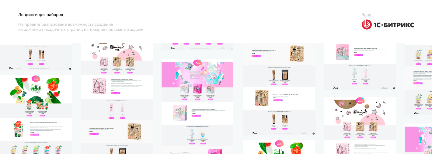 Для рекламных целей понадобилось реализовать механизм создания лендингов для наборов товара. Механизм представляет из себя инфоблок, привязанный к сайту. В элементы этого инфоблока могут быть занесены страницы - лендинги. Каждый лендинг включает в себя список товаров, символьный код, который будет участвовать в формировании ссылки на страницу, и графический контент (баннеры). Также есть возможность указать класс для <body>, сделано с целью того чтобы странице можно было бы задавать тему непосредственно для этого лендинга.