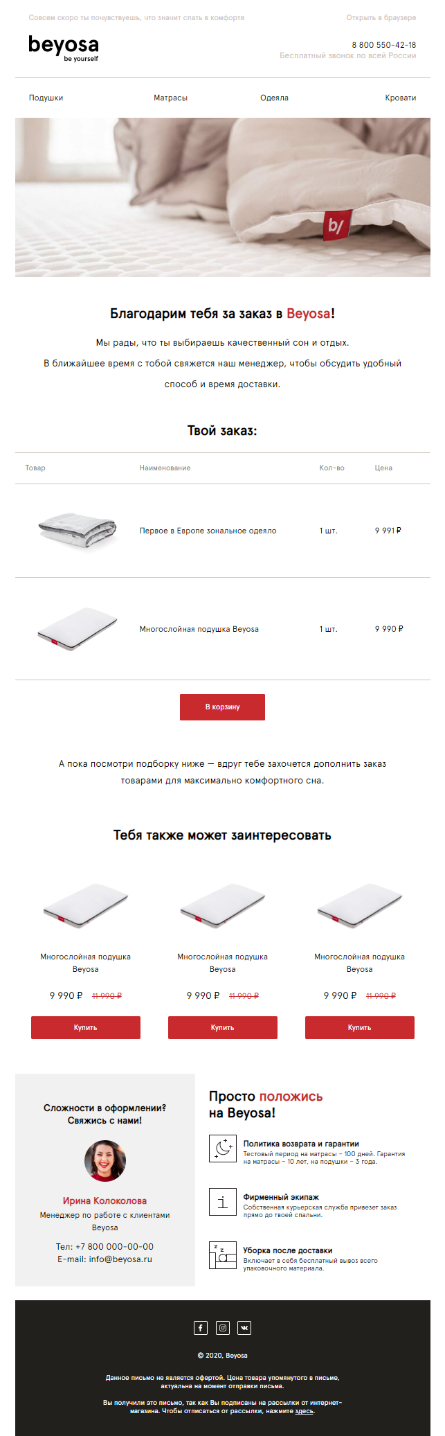 Сверстать шаблон рассылки для оформленного заказа на сайте. Платформа - Битрикс.
